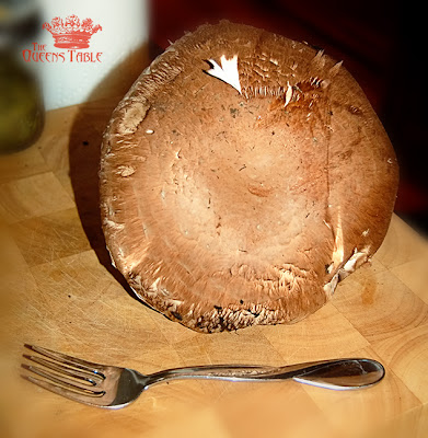 In order to make this dish look like sliced meat you have to buy the biggest portobello mushroom that you can find in your organic produce department. Take a look at this beauty! I put the fork in the shot so you can have a reference point for the size.